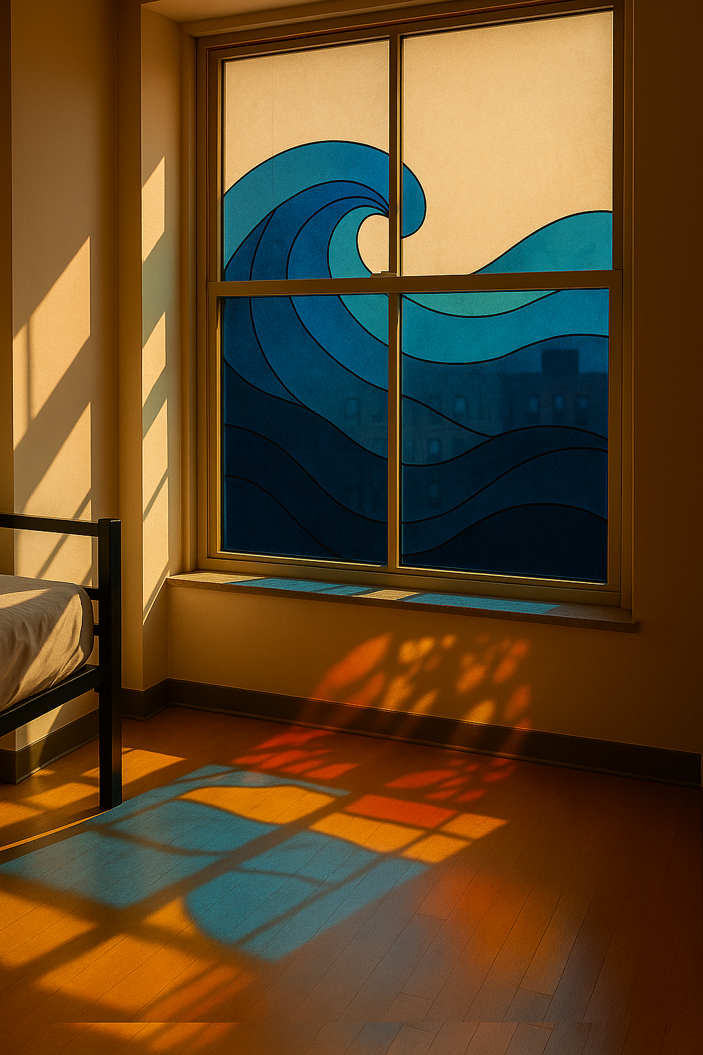 The Azul Flow design brings calm movement into your space through a sweeping blue geometric wave. Its balanced form and cool tones create a clean, modern look that complements natural light while adding privacy.